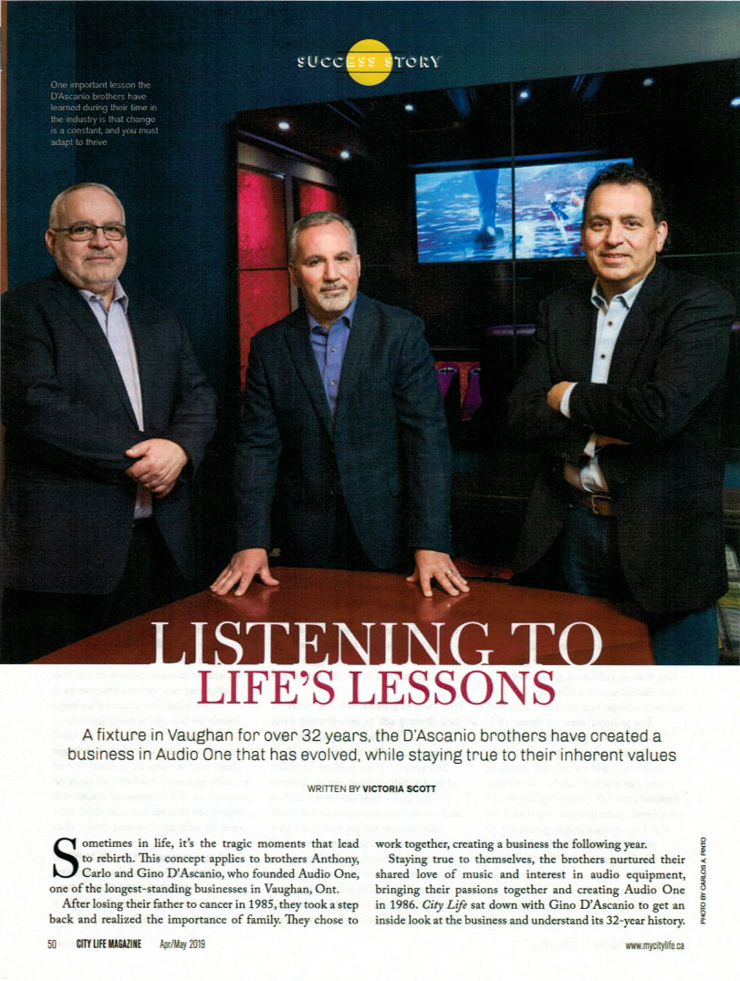 Audio One was founded in 1986 by Anthony, Carlo, and Gino D’Ascanio. Joined by their love for music and audio equipment, and inspired by their father’s recent passing, the three brothers stepped into the business with determination and confidence. After 30 plus years, Audio One has stayed current with new technology and change. Yet we have stayed true to our heritage as a business with a family atmosphere and an emphasis on the “personal” touch. In fact we now work with many children and extended families of past or current clients.