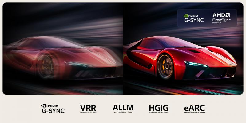 *OLED G5 features NVIDIA G-Sync, FreeSync Premium, GeForce NOW, Game Portal, VRR, ALLM, eARC, and HGiG. *83/77/65/55 inches of OLED G5 only works with games or PC inputs that support 165Hz. And it runs up to 144 Hz on Dolby Vision inputs. *97 inch supports 120Hz, and 48 inch supports 144Hz. *HGiG is a volunteer group of companies from the game and TV display industries that meet to specify and make available for the public guidelines to improve consumer gaming experiences in HDR. *Support for HGiG may vary by country. *48 inches of OLED G5 only has ClearMR 9000 certification. *clearMR is a certification program of VESA to evaluate the motion blur performance of the display.