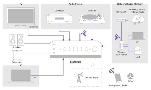From audio you’ve stored your PC or a network drive to vinyl records and TV—the R-N1000A handles everything, giving you superior sound and drawing out the full sonic splendor inherent in all your entertainment.