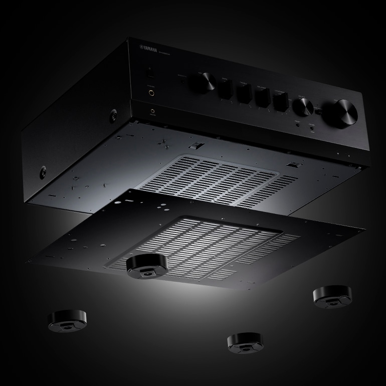 Custom-made power transformer and block capacitors, one-point grounding system, high-quality audio condensers, and other top-class parts effortlessly handle demanding audio signal conditions. Since the quality of each individual part, as well as how they work together, basically determines the sound quality of any component, Yamaha makes sure that only the most carefully selected and tested parts are used.