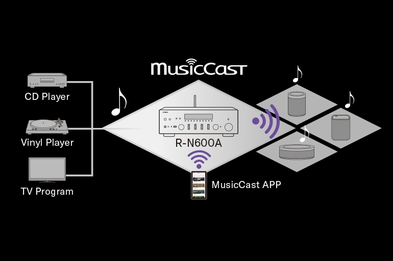 Entertainment content from your records, TV, CDs, and other sources connected to the R-N600A can be sent to other MusicCast devices and enjoyed throughout your home. Moreover, all MusicCast products have been designed first and foremost for superior sound quality.