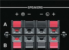 Equipped with speaker terminals for two systems, this receiver lets you can connect two sets of speakers. The speaker selector makes it easy to switch between speaker outputs, allowing you to hear the sound from one speaker system (A or B) or from both (A+B).