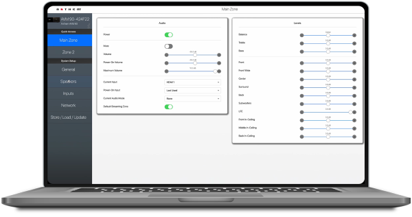 The Anthem Web User Interface was specially designed for easy setup. Nothing could be more simple than on-site configuration and calibration using our intuitive web based controls. The specially designed, adaptive web based user interface works on any device. Custom configure everything the new AVM/MRX series has to offer.