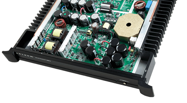 The M1’s cooling system quickly and efficiently moves heat from the interior of the amplifier to exterior heat sinks. Sealed copper pipes within the amp contain a small amount of special fluid held under a vacuum. When the temperature at one end of the pipe rises — the end adjacent to the amplifier's heat sources — the fluid in that end evaporates. This vapor is then naturally drawn to the cooler end of the pipe, along the heat sink on the side of the amp’s chassis where it condenses. From there a copper wick returns the fluid to the hotter end of the pipe. This heat transfer process is many thousands of times faster and more efficient than cooling through metal heat sinks alone. This system eliminates the need for fans, allowing multiple M1s to be stacked with no danger of overheating. It also means the amplifier is so mechanically quiet it will suit even the quietest listening rooms.
