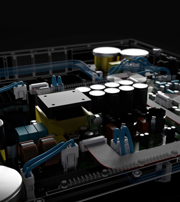 Digital amplification is cool-running and energy efficient, even when working hard, while Dynamic EQ and Room EQ ensure a precise sound for music and movies.