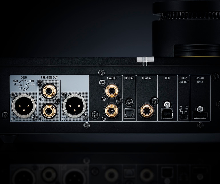 Featuring a comprehensive set of input terminals, including USB (type B), coaxial, and optical, the HA-L7A lets you connect a full variety of devices, such as high-resolution DAPs (digital audio players), PCs, and CD players. The amplifier also has built-in XLR and RCA pre-out/line-out output terminals, allowing it to serve as a D/A converter or preamplifier, providing exceptional connectivity and expandability options when using an external amplifier.