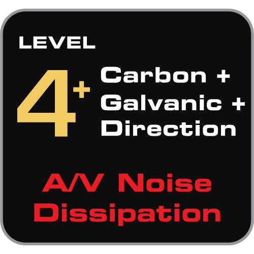 To further reduce RF Noise, Level 4+ Noise-Dissipation adds Galvanic Isolation and a Carbon Mesh-Network to the Direction-Controlled A/V and eARC conductors.