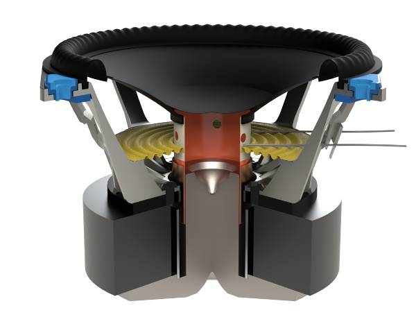 The Founder’s Bass driver is a 6” (152mm), 7” (177mm) or 8” (215mm) Ultra-High-Excursion Unibody CARBON-X™ Cone, over-molded Gen3 Active Ridge Technology (ART™) Surround with Vertical Mounting System, Advanced SHOCK-MOUNT™ Isolation and a 1.5” high-temp multi-layered voice coil with ventilated Apical™ former.