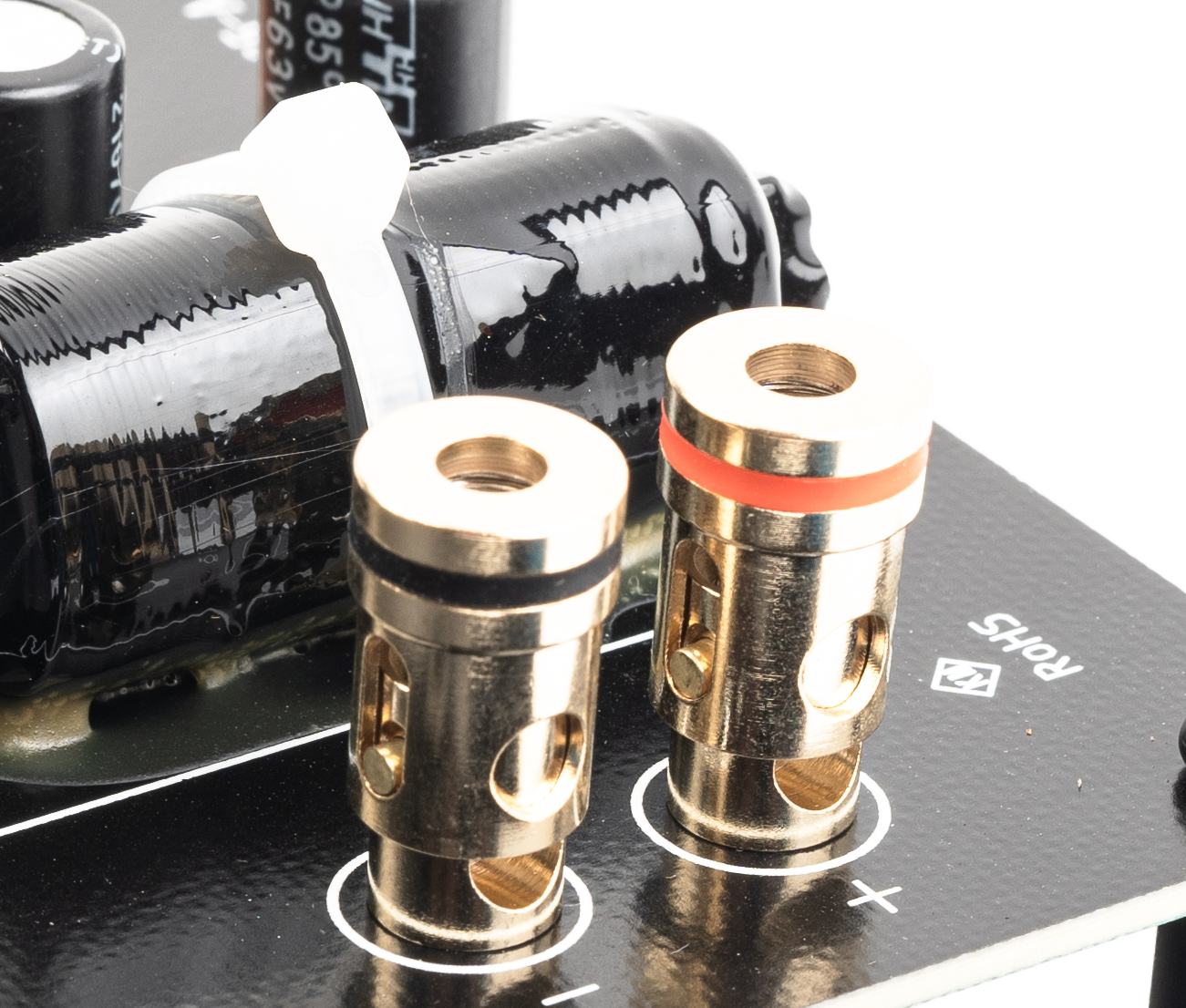 Easy-access binding posts: High-quality binding posts feature a larger wire access hole and connect via banana plug, pin or bare wire.
