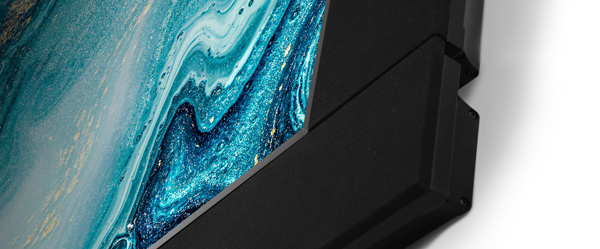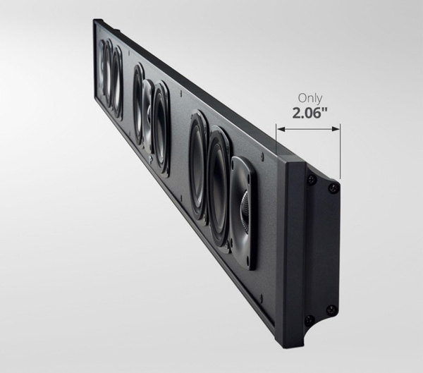 High-performance Anodized Unibody Bass/Midrange Cones with durable Nitrile-Butadiene Rubber Surrounds and specifically designed driver motor structure, featuring 1.5" high-temp voice coils and super-efficient shallow-depth extruded aluminum heatsinks, for a long life of high performance in the thinnest space.