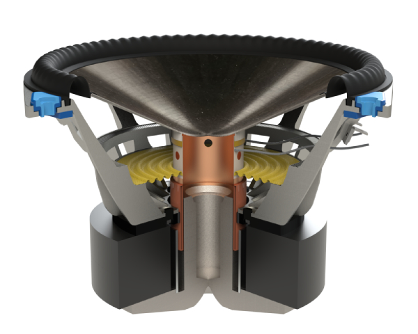 | MIDRANGE FREQUENCY DRIVER | 6” (152mm) AL-MAG™ Cone with Perforated Phase-Aligning (PPA™) Lens, SHOCKMOUNT™ Isolation Mounting System, and a 2” high-temp multi-layered voice coil with ventilated Apical™ former |