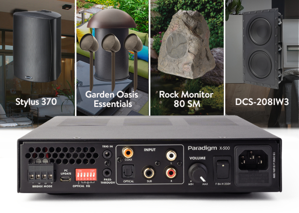 The All-New Two-Channel Paradigm X-500 amplifier is the perfect complement to our Home, Pro and Elite in-wall and in-ceiling speakers, the Defiance Custom Subwoofers and our Stylus, Rock and Garden Oasis outdoor solutions. Configurable as either a two-channel Stereo, dual Mono, or as a bridged single-channel Mono amplifier, the X-500's slim form-factor, flexible inputs and selectable DSP presents make installation and setup a breeze.