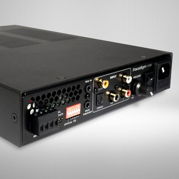 The Paradigm X-500 features a host of inputs, including Stereo RCA and selectable Digital Coax or Digital Optical, offering plenty of flexibility to connect to your favourite source. In addition, X-500's dedicated Subwoofer (LFE) Input makes it incredibly easy to power custom subwoofers, like our DCS208IW3 and DCS208FR3, by connecting directly to the "subwoofer output" of your AVR or AV Processor. This allows X-500 to use the bass management in your AVR or AV Processor with no additional processing applied. Alternatively, the Stereo RCA input can be utilized if a low pass filter is required.