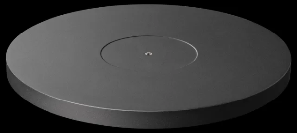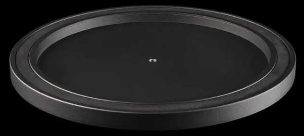 The die-cast aluminium platter is reworked and precision balanced in an extra step to obtain an evenly spinning platter. It is anti-magnetic, allowing also MC cartridges to work properly.