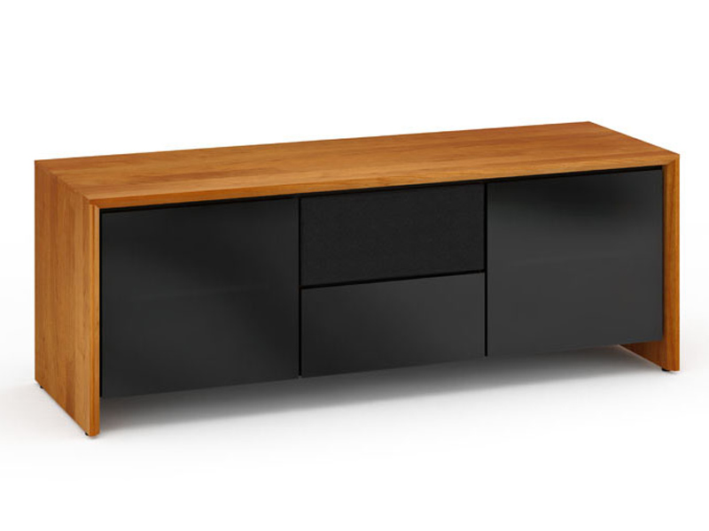 Available in Natural Cherry and Natural Walnut finishes with Smoked Glass Doors or Natural Walnut with Gloss White doors.