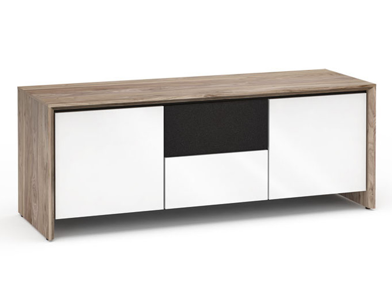 Available in Natural Cherry and Natural Walnut finishes with Smoked Glass Doors or Natural Walnut with Gloss White doors.
