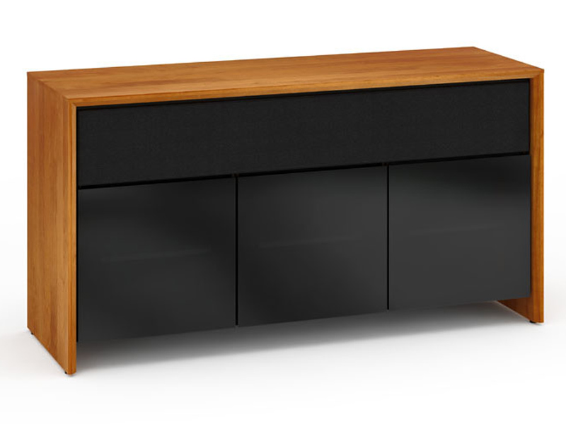 Available in Natural Cherry and Natural Walnut finishes with Smoked Glass Doors or Natural Walnut with Gloss White doors.
