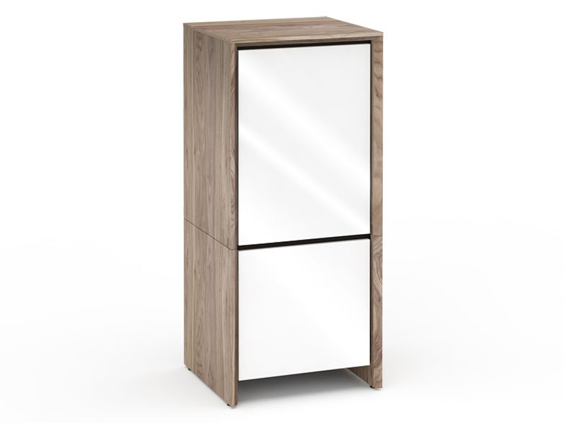 Available in Natural Cherry and Natural Walnut finishes with Smoked Glass Doors or Natural Walnut with Gloss White doors.
