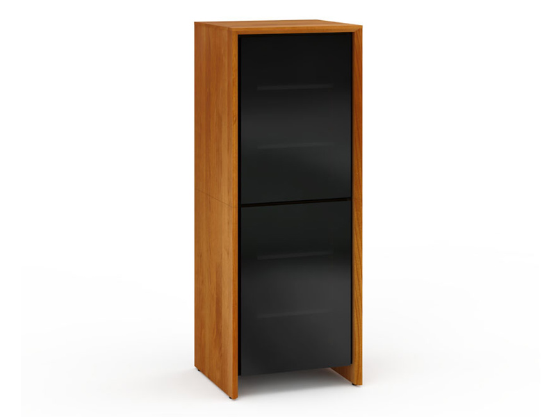 Available in Natural Cherry and Natural Walnut finishes with Smoked Glass Doors or Natural Walnut with Gloss White doors.