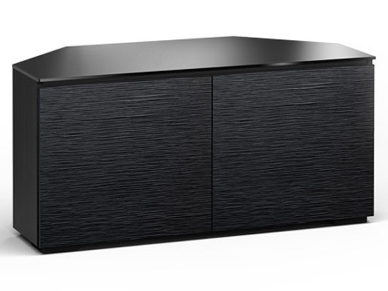 Lightly textured, black oak doors with black, tempered glass top and black oak finished side panels