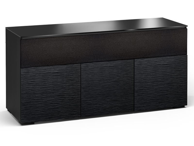 The light look and feel of tall grasses is finely set in a horizontal textured pattern. Black oak with black glass top and black feet work in unison, creating the cabinet's hi-tech façade.