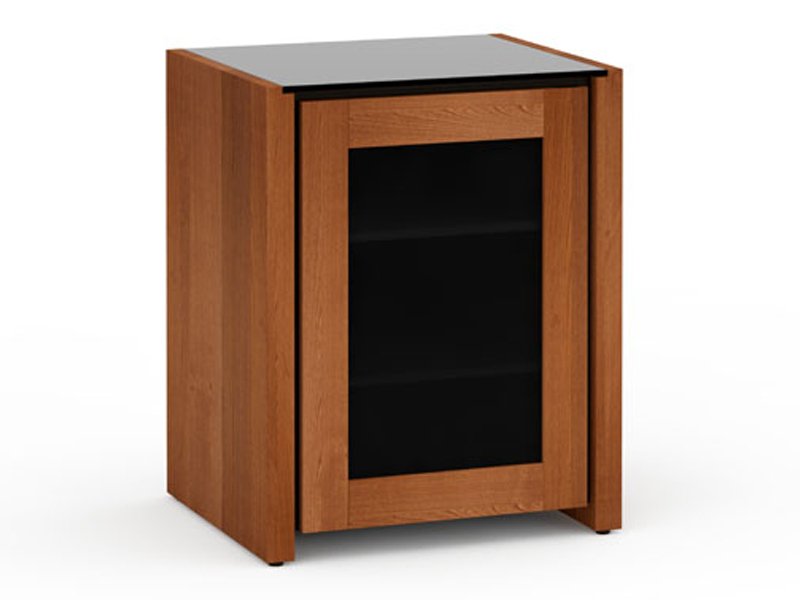 This easygoing and laidback style is represented in a cherry finish, with extra-thick end panels, and complemented by a seamlessly integrated black glass top.