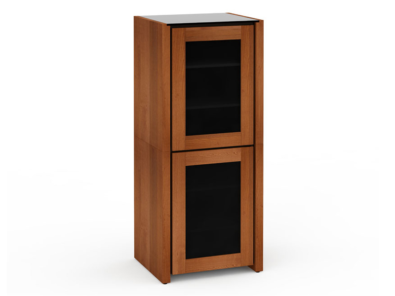 This easygoing and laidback style is represented in a cherry finish, with extra-thick end panels, and complemented by a seamlessly integrated black glass top.