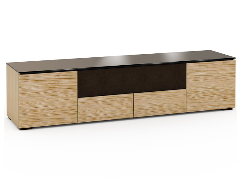 Deep textured, medium walnut or natural oak doors with brown, tempered glass top and matching smooth side panels