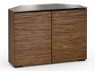 Deep textured, medium walnut or natural oak doors with brown, tempered glass top and matching smooth side panels