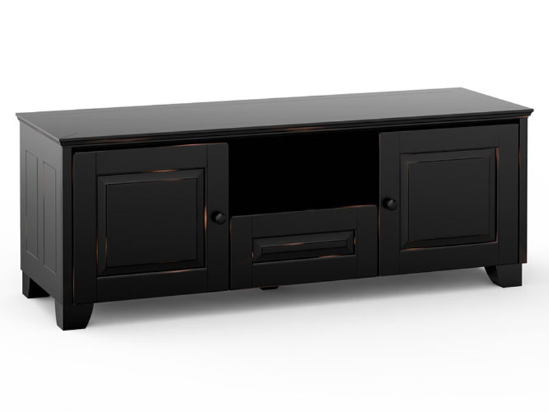 This finely crafted unit in distressed black finish is a charming and comfortable design that brings to mind a traditional country home.