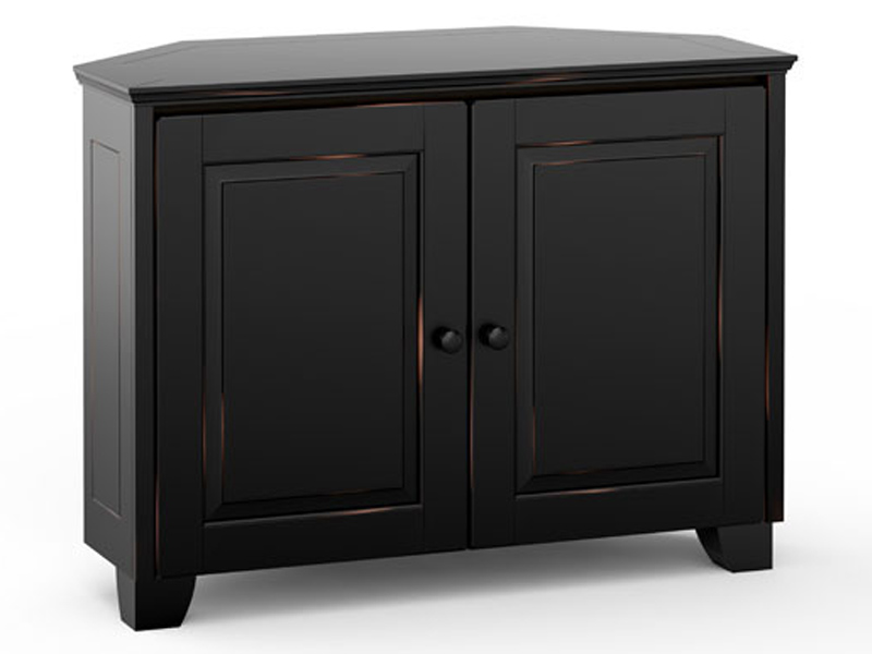 This finely crafted unit in distressed black finish is a charming and comfortable design that brings to mind a traditional country home.