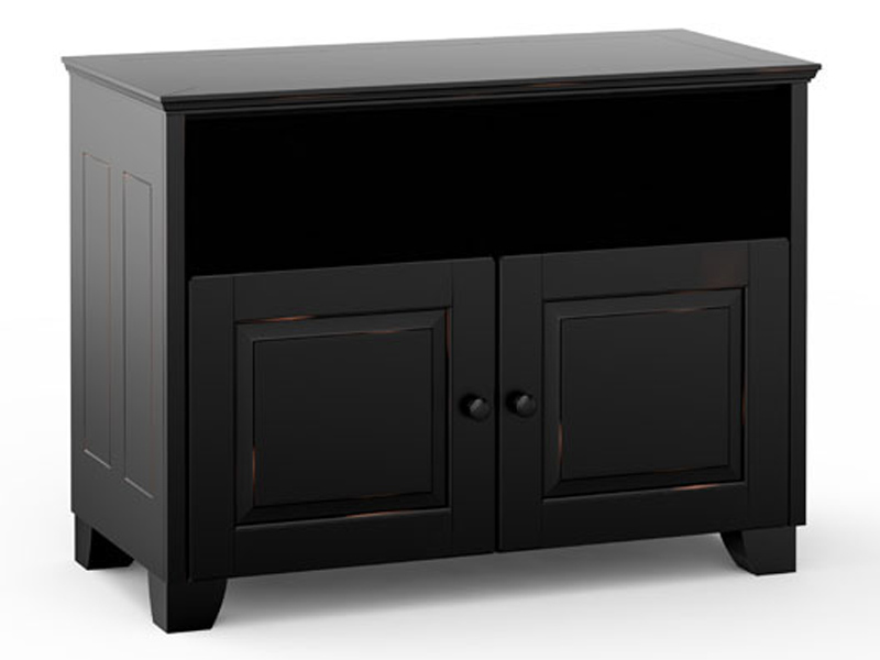 This finely crafted unit in distressed black finish is a charming and comfortable design that brings to mind a traditional country home.
