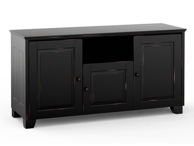 This finely crafted unit in distressed black finish is a charming and comfortable design that brings to mind a traditional country home.