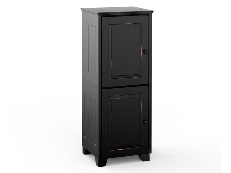 This finely crafted unit in distressed black finish is a charming and comfortable design that brings to mind a traditional country home.