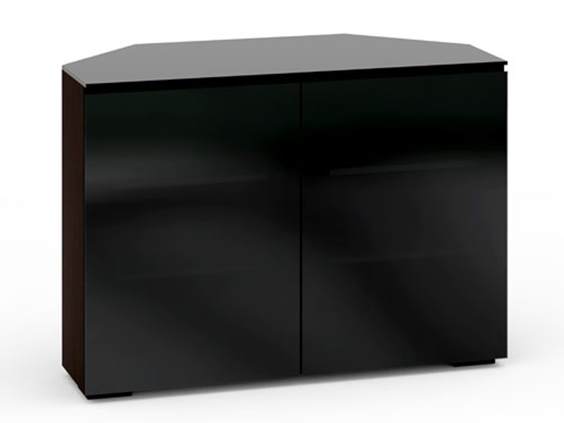 Wenge finish end-panels, smoked glass doors with black, tempered glass top