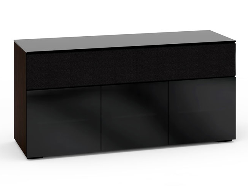 Wenge finish end-panels, smoked glass doors with black, tempered glass top