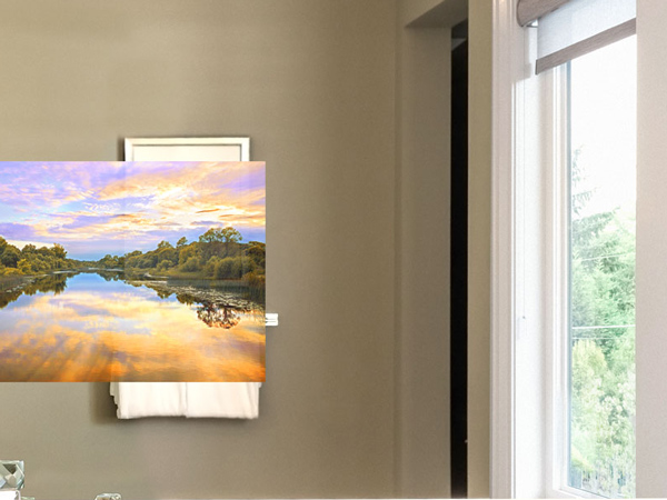 Séura Vanity TV Mirrors are purposefully crafted to create excellent mirror reflectivity, while enabling the television to completely disappear when switched off.