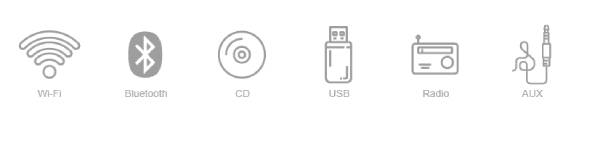 - CD, AUX, USB, Bluetooth®, WiFi, AirPlay 2