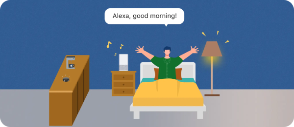 Make your life easier by automating your routines. For your sleeping and wake-up routines, create a routine to wake up or fall asleep to your favorite music, station, or podcasts. Or, use your Alexa to create routines.