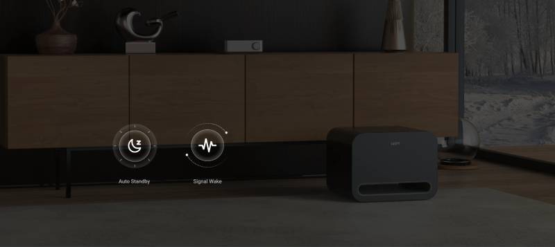 Automatically enters standby mode and detects RCA signal or plug input to optimize energy use and simplify daily operation.