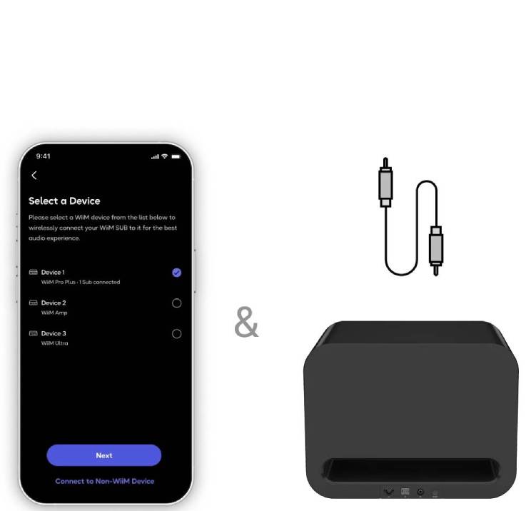 Select your main WiiM speakers/amp in the app (or plug an RCA sub-out).