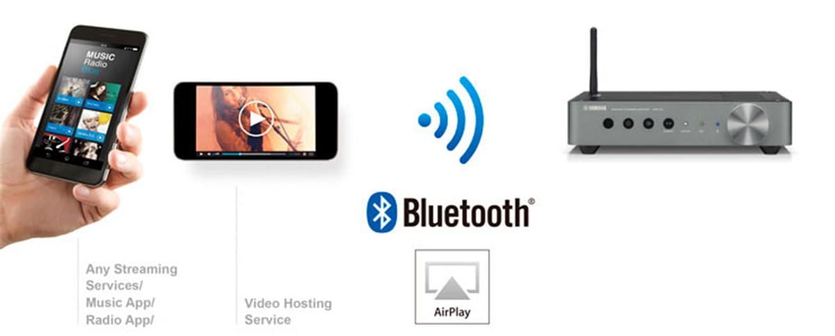 You can hear all the music sources from your smartphone via wireless Bluetooth or AirPlay connection. You can play music from music apps, radio apps, or YouTube™-type video hosting services.