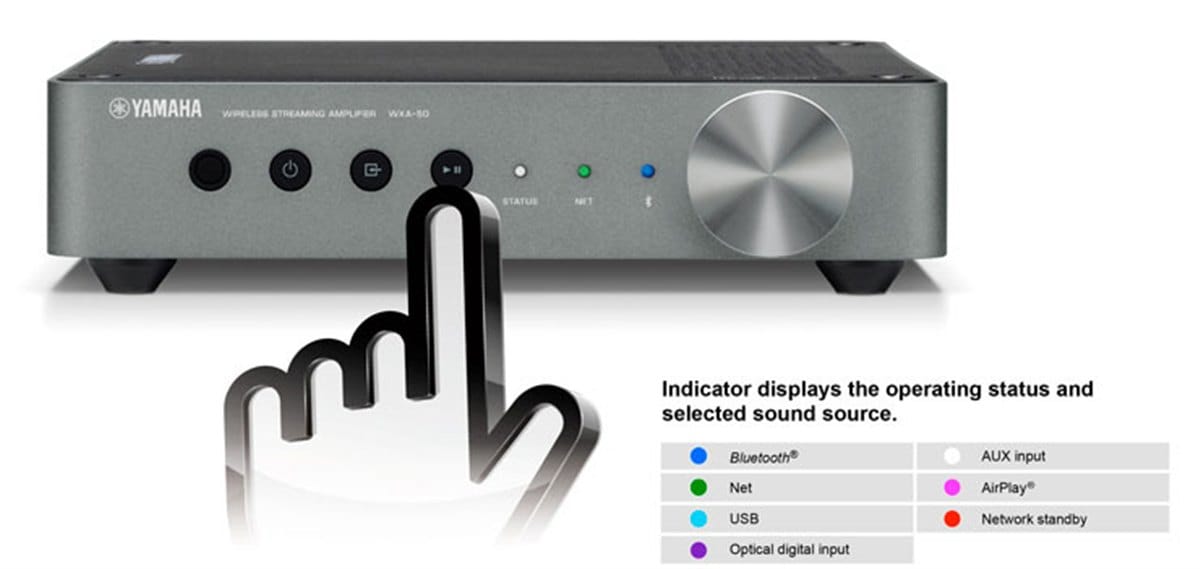 The WXA-50 reaps the benefits of Yamaha’s advanced audio technologies and circuit designs. The preamp circuitry, for example, minimizes digital jitter and uses the same high performance ESS DAC that is found in high-end AV receivers. Yamaha’s proprietary power supply ground configuration, called DAC on Pure Ground, ensures that the power supply will never negatively affect sound quality. The 48-bit digital volume control provides much greater precision and quality that conventional digital or analog controls. In addition, a highly rigid, metal chassis supplies the stability necessary for powerful, clear music reproduction.